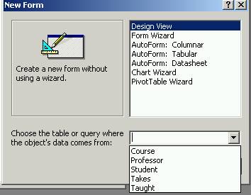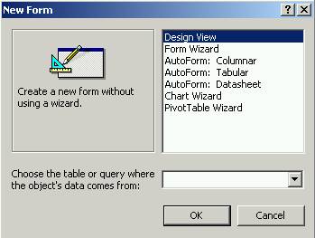 The New Form dialog box offering