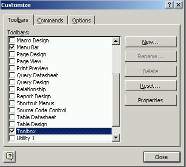 Toolbars tab make sure to check the toolbars option. Then click close, the