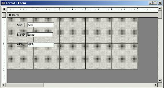 The Design View of the form opens up,