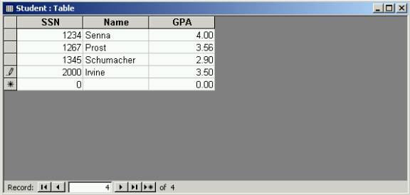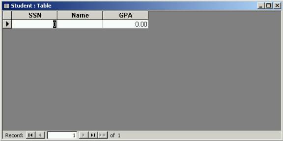 toolbar. On the main dialog box, double click on the Student table. This brings