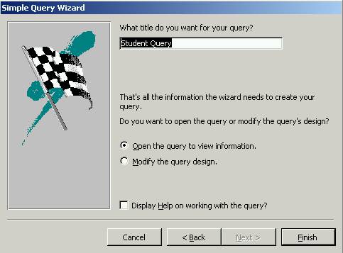 the default name for this query. Click Finish.