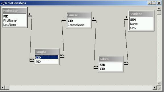 relationship between Students and Takes.