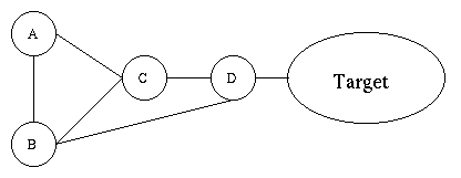 time ---> B : unreachable | C , 4 | C , 5 .... C : B , 3 | A , 4 | A , 5 A : B , 3 | C , 4 | C , 5 The problem is that A and C both believe they can connect to the target through each other. It happened because they sent messages indicating they can connect to the target at cost of 3. When they received the message from B saying that the target is unreachable, they received another message. The second message said they can connect to the target in cost of 3. This cost is of course not true, because the link from B to D is unusable. Since A and C don't know that the route from each other uses another link that is no longer usable, they would both update their tables to point at each other. Since, they increase the metric by one, they will both report that the cost is now four. Since A uses C as next connection, and C signals that the cost had change, A would change the cost of the link. Same thing would happen to C . This way the cost of the connection will slowly rise. The worst case is when the target is really unusable, and then the cost will rise up to infinity. This effect is called 'counting to infinity'. This is why infinity was chosen to be such a small number. If some autonomous system becomes completely unreachable, we would like the counting to be over as soon as possible.