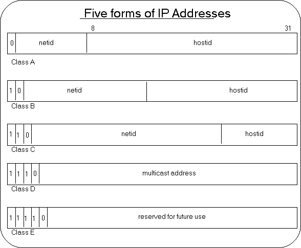 There are five forms of IP addresses: