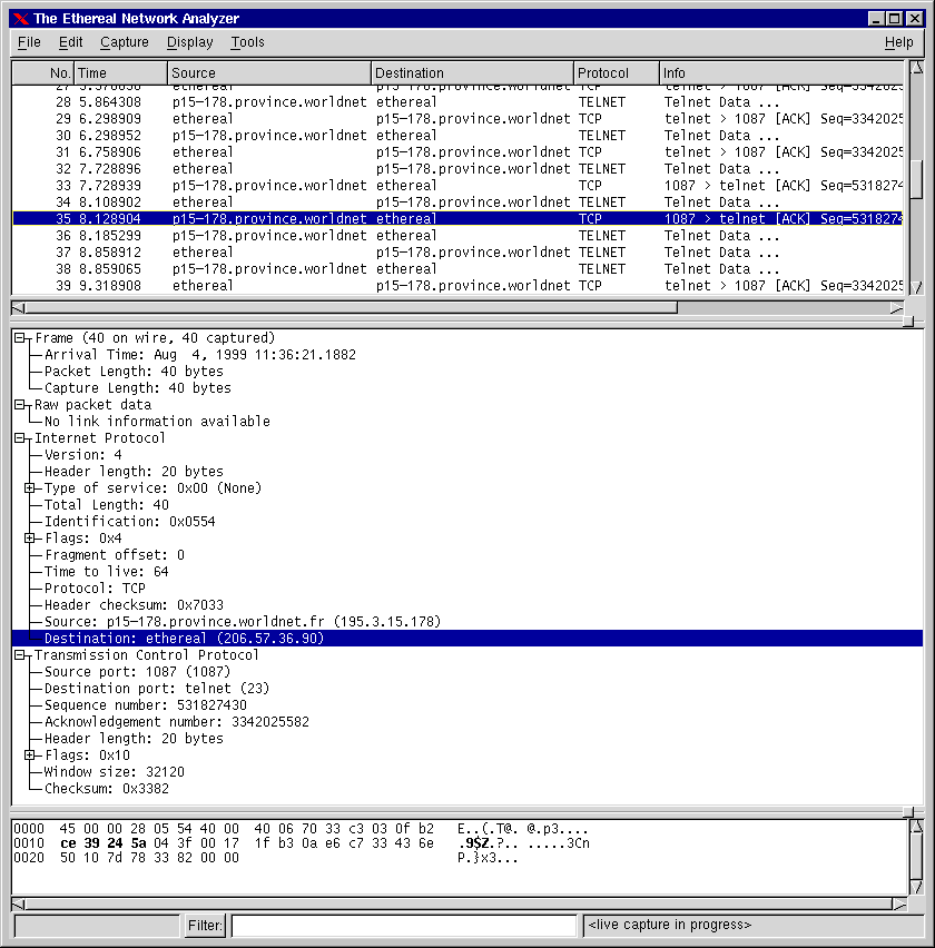 This image shows Wireshark in the middle of a capture. As you can see, you can inspect the captured data in great detail, all while the capture is still in progress